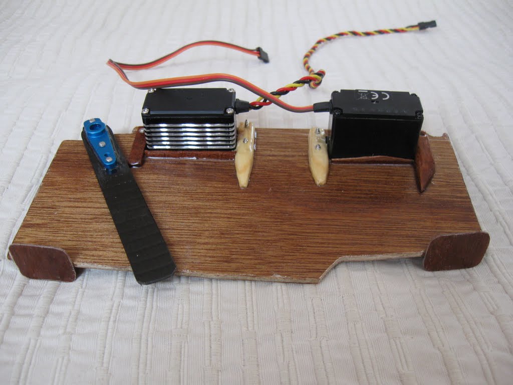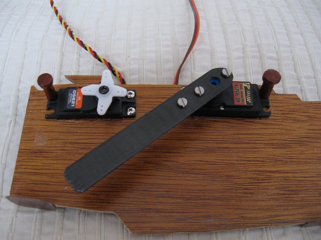 Carbon arm on an aluminium servo horn. The servos are firmly attached.